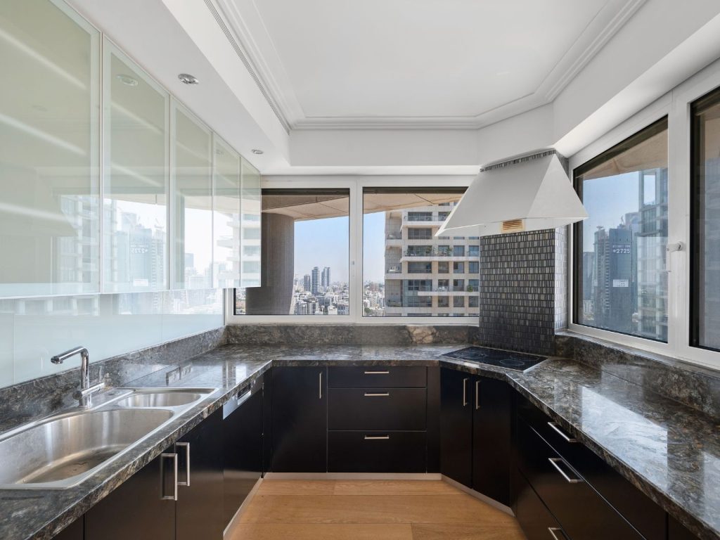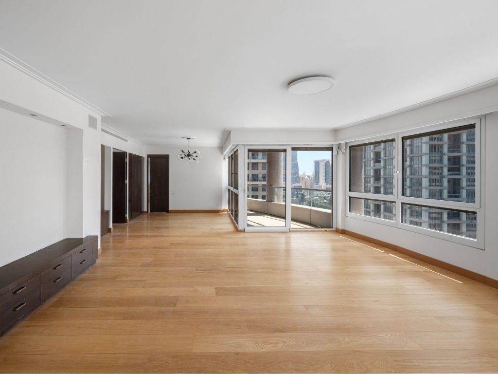 The apartment is located on the 20th floor of the prestigious and highly sought-after Yu Towers. It comes with 2 underground parking spaces in a private tabu (land registry) arrangement. The building offers luxurious amenities, including a spa with a large swimming pool, a fitness room, a meeting room, an event hall, 24/7 security, and a private courtyard with a spacious garden exclusively for residents’ use.”